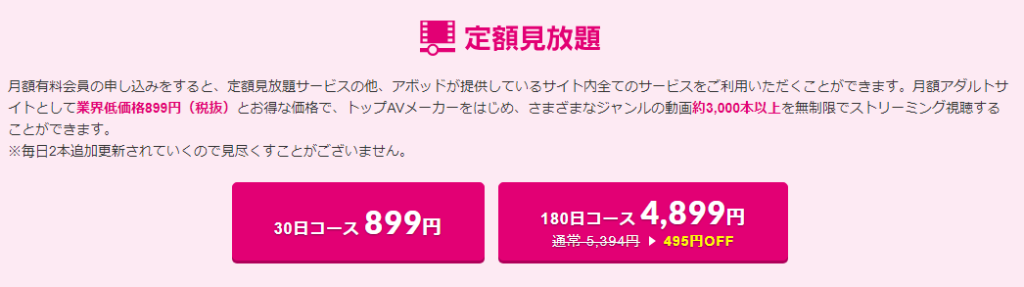 | 動画本数 | 3,000本以上を常に配信。新作もほぼ毎日配信されています。 |