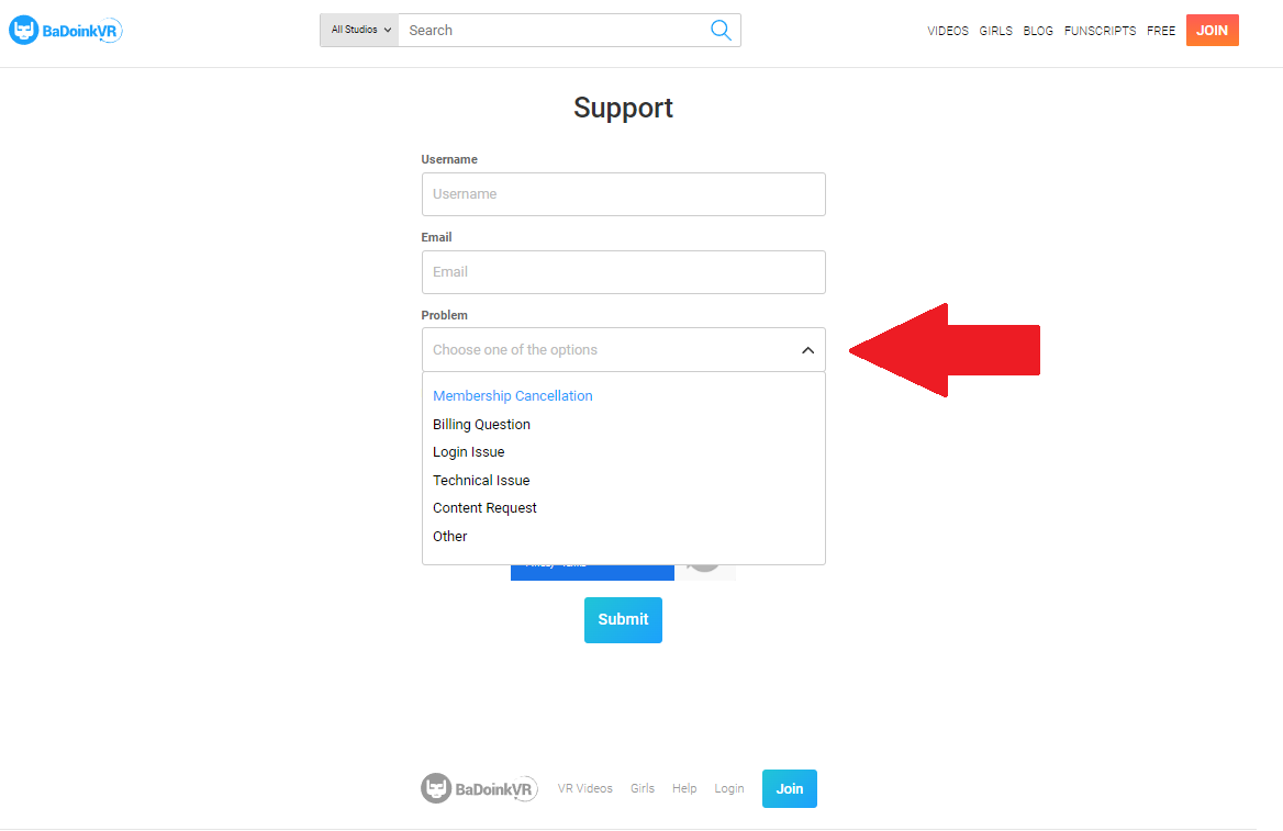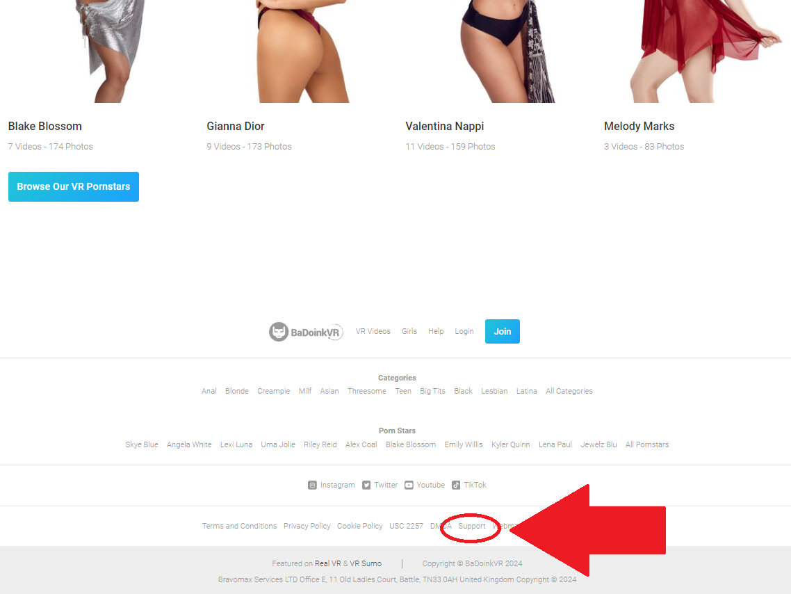 BaDoinkVRの退会は、サイトの最下部の「Suppot」から行います。